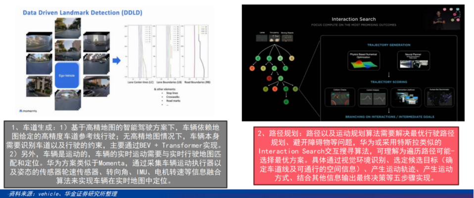 2)车道识别及路径规划方面,从1.0的“有高精地图”转向2.0的“无图”,无外购高精地图基础下,采用RCR算法完成车道实时识别及路径规划,提升了智驾方案的城市泛化速度及更新频率;