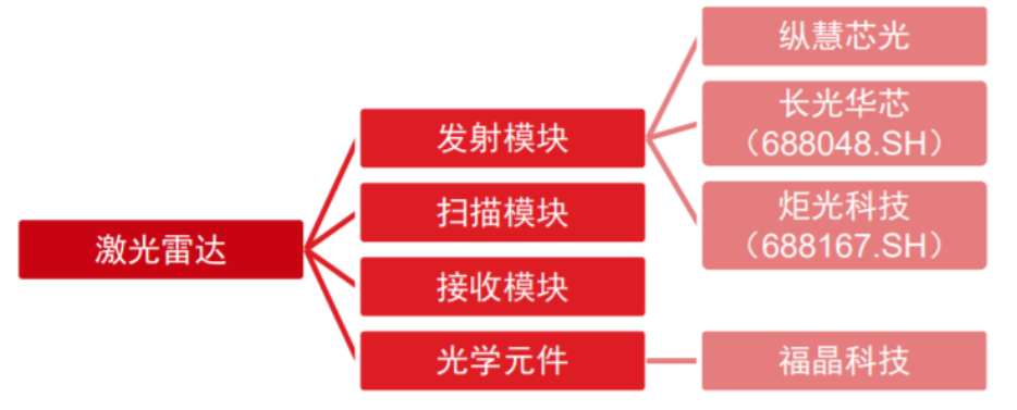 3.供应链之传感器:激光雷达零件外企主供,持续推动国产替代