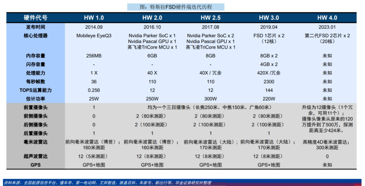 FSD智能驾驶的实现基于特斯拉独树一帜的软件算法,创新性的提出BEV+Transformer+OccupancyNetwork的感知范式,并成为全球首家“端到端”神经网络量产上车的企业,实现了从繁琐规则驱动到数据驱动的简化,小鹏、蔚来等多家国内车企纷纷追随;硬件端方面,特斯拉持续增加摄像头数量,对其他传感器则倾向于做“减法”,以更好地适配其纯视觉技术路线。