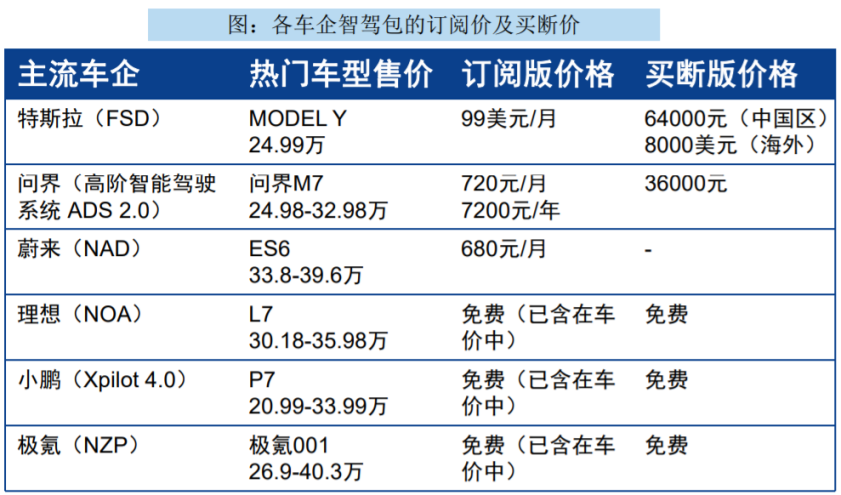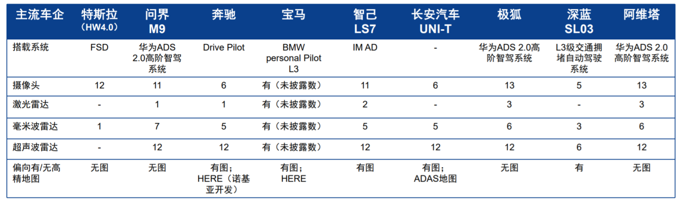 1)单车传感器数量呈现下降趋势,包括激光雷达从3个减配至1个、毫米波雷达从6R减配至3R、摄像头数量亦有所减少;