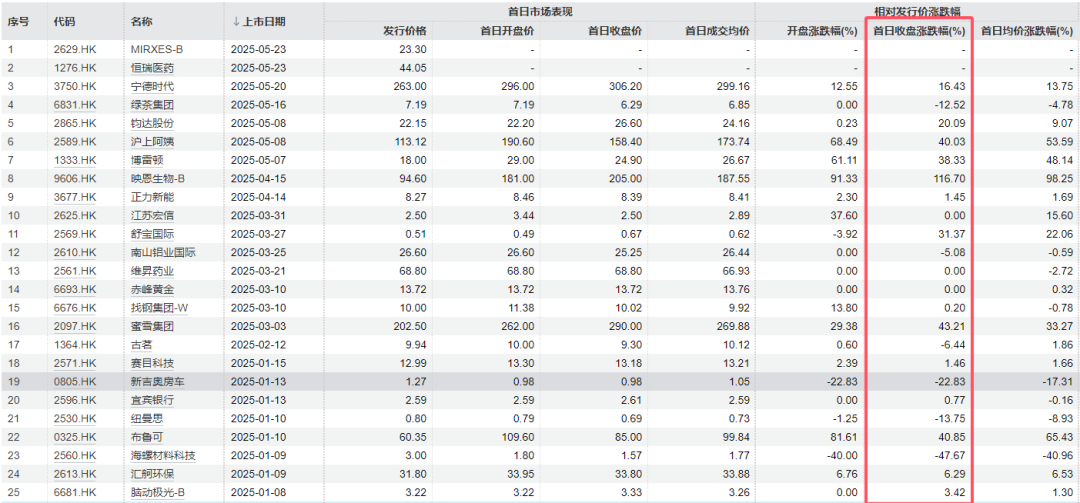 值得注意的是,不仅是恒瑞医药的港股IPO表现亮眼,2025年以来,港股IPO赚钱效应就持续显现。