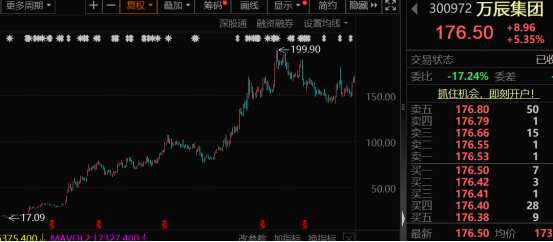 万辰集团也是A股大牛股之一,2024年8月以来,公司股价从17元左右,最高上涨至近200元,涨幅超过10倍。近期,公司还筹划赴港股上市,进一步推进国际化战略,提升品牌知名度和综合竞争力,完善供应链体系建设。