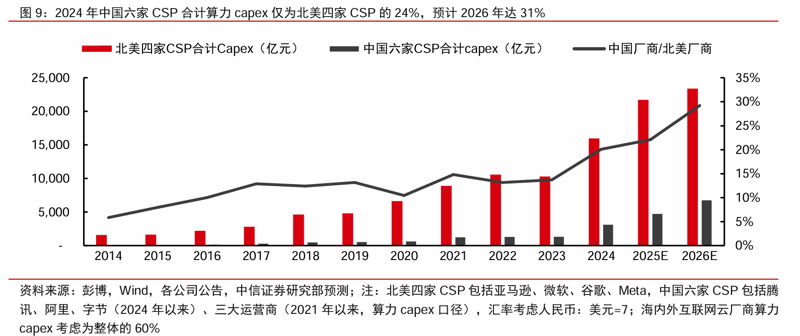 数据中心需求:预计带动千兆瓦量级需求。对于IDC而言,其商业模式核心为将能源转化为算力,通过AI资本开支对应的算力需求反推实际的数据中心规模,阿里巴巴可带动约467兆瓦的需求(FY2026E)。