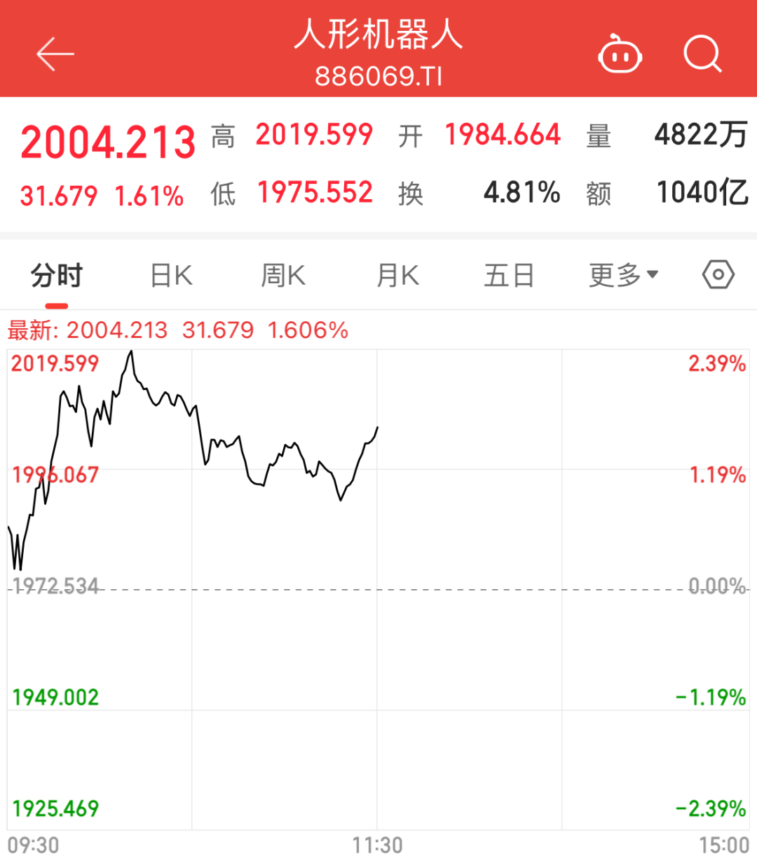 2月19日,人形机器人板块大爆发。同花顺iFind显示,人形机器人指数当日涨幅高达8.35%,板块内的骏创科技、万达轴承、三丰智能、丰立智能、长盛轴承等多只个股掀涨停潮。2月20日早盘,人形机器人板块延续强势,盘中涨幅一度超2%。截至午间收盘,人形机器人指数涨1.61%,万达轴承30%涨停,三丰智能20%涨停。