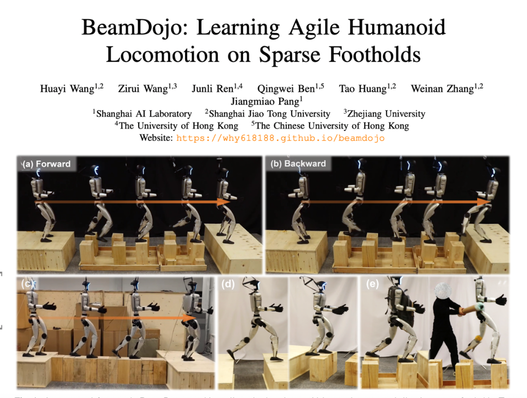 “BeamDojo”的论文介绍,在具有稀疏踏点的复杂地形上进行行走,对于人形机器人来说是一项重大挑战,这需要精确的脚部放置和稳定的移动能力。
