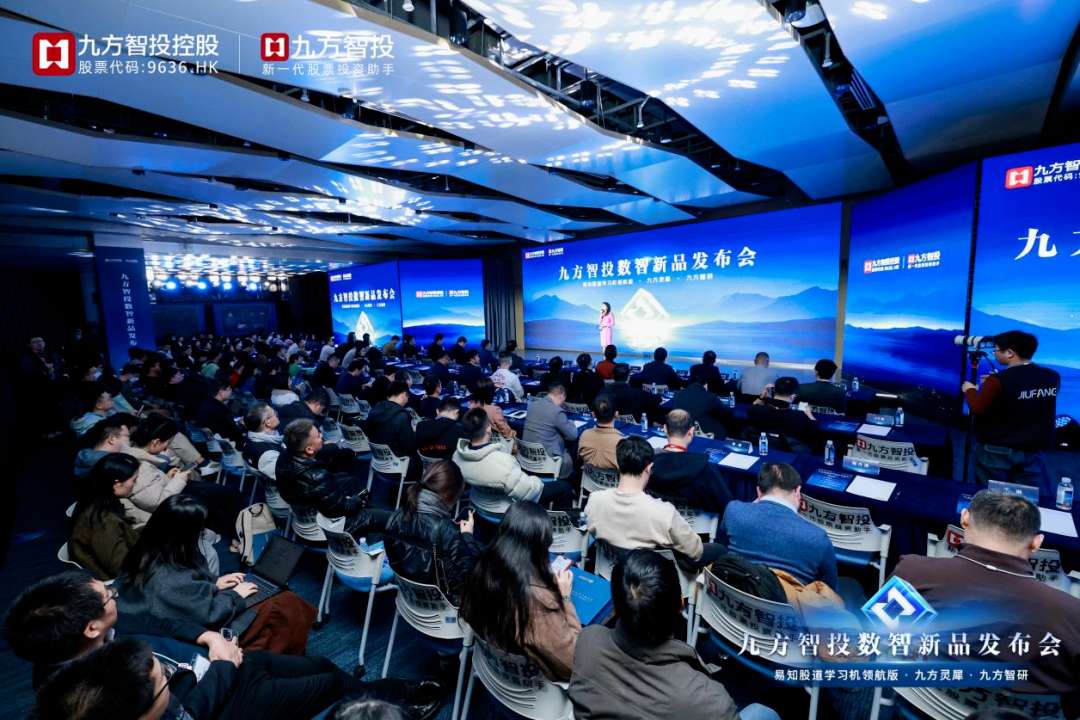 图为中央广播电视总台主持人主持九方智投数智新品发布会