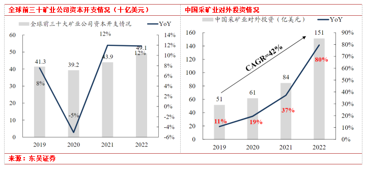 (2)需求端:中国工业金属如铜、铝、银等矿产资源相对贫乏,在全球矿产资源博弈日益激烈的大背景下,矿产安全的地位持续提升。此外,全球发展中国家大多不具备自主开采、精炼能力,中国企业能够提供从建设到运营的全套工程解决方案,逐渐成为其第一选择。