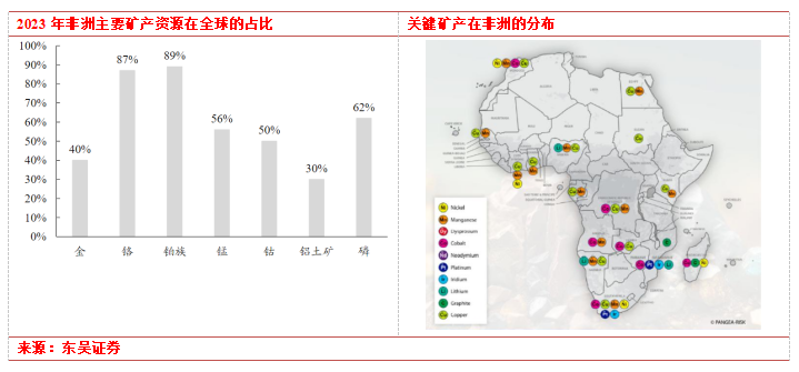 此外,非洲铝土矿、钴、金、金刚石、铂族金属、铀、钛、锰、钒、铬等重要矿产的资源量均居世界前列。