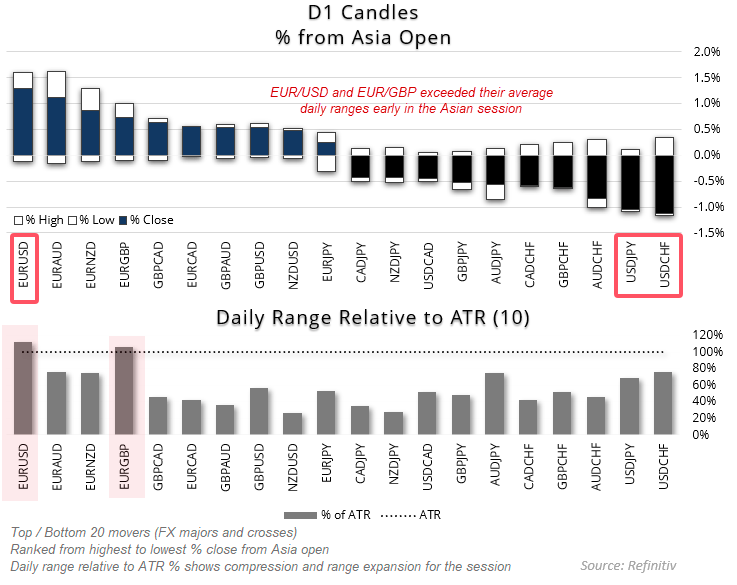 (欧元兑美元日内涨幅名列主要货币对之首)