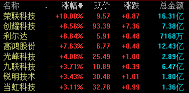9月25日,华为星闪概念股尾盘表现活跃,截至发稿,荣联科技涨停,创耀科技、高鸿股份、光峰科技、九联科技等纷纷跟涨。