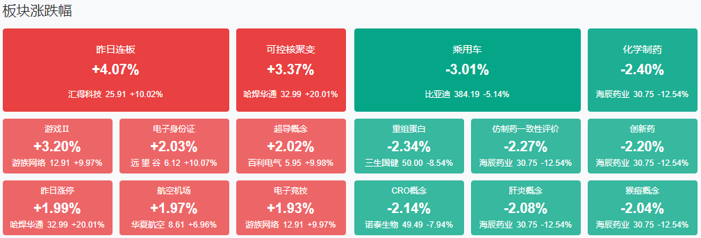 板块方面,可控核聚变、智能物流、机场航运、光刻机等板块涨幅居前,创新药、中药、汽车整车、美容护理等板块跌幅居前。截至收盘,沪指跌0.3%,深成指跌0.71%,创业板指跌1.28%。