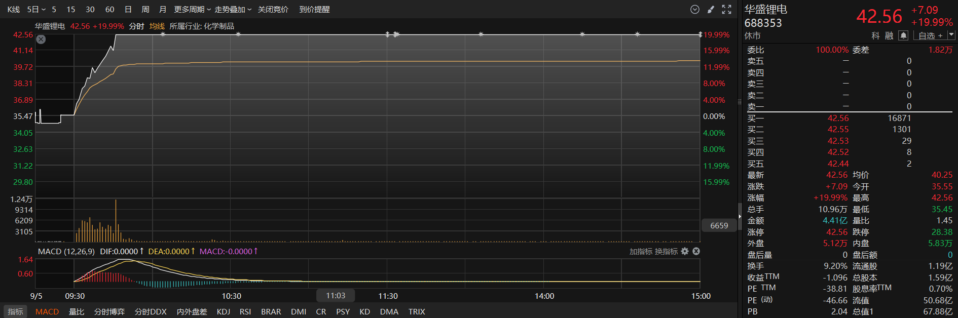 二级市场上,华盛锂电周五收盘20CM涨停。