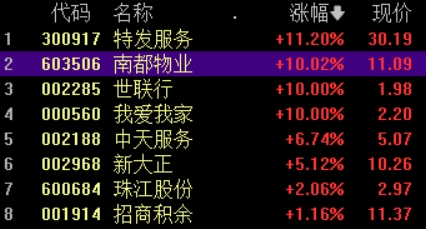 5月10日,地产股表现活跃,空港股份一度涨停收获2连板,南都物业、我爱我家、天地源等涨停,滨江集团涨超7%,天保基建、中交地产等跟涨。