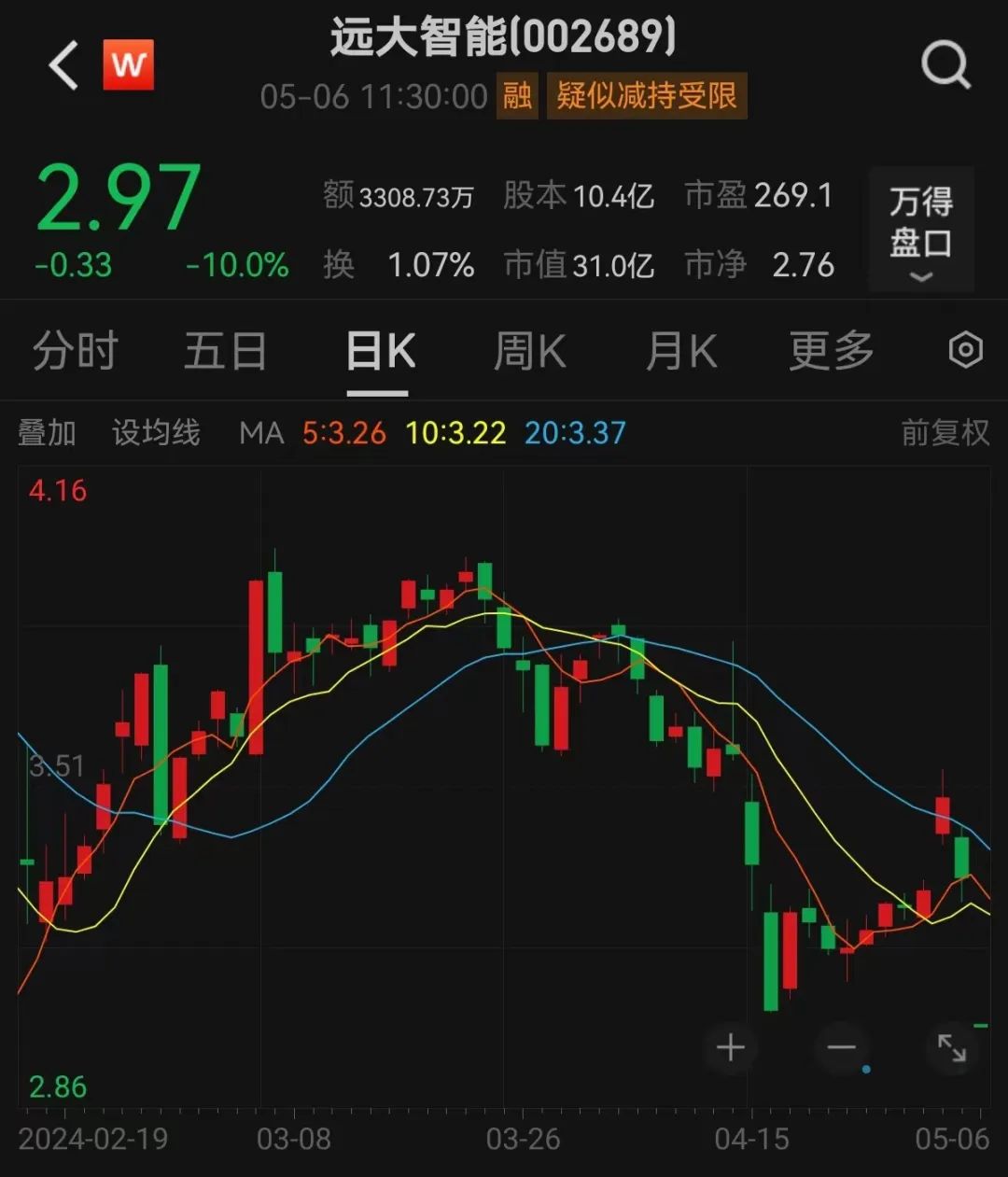 远大智能早盘跌停,股价失守3元关口,总市值31亿元,封单超17万手。消息面,公司于4月30日收到证监会下发的《中国证券监督管理委员会立案告知书》,因公司涉嫌信息披露违法违规,根据相关法律法规,证监会决定对公司立案。另外,日前公布的第一季度净利润同比下降86.60%,净亏损4201.16万元。