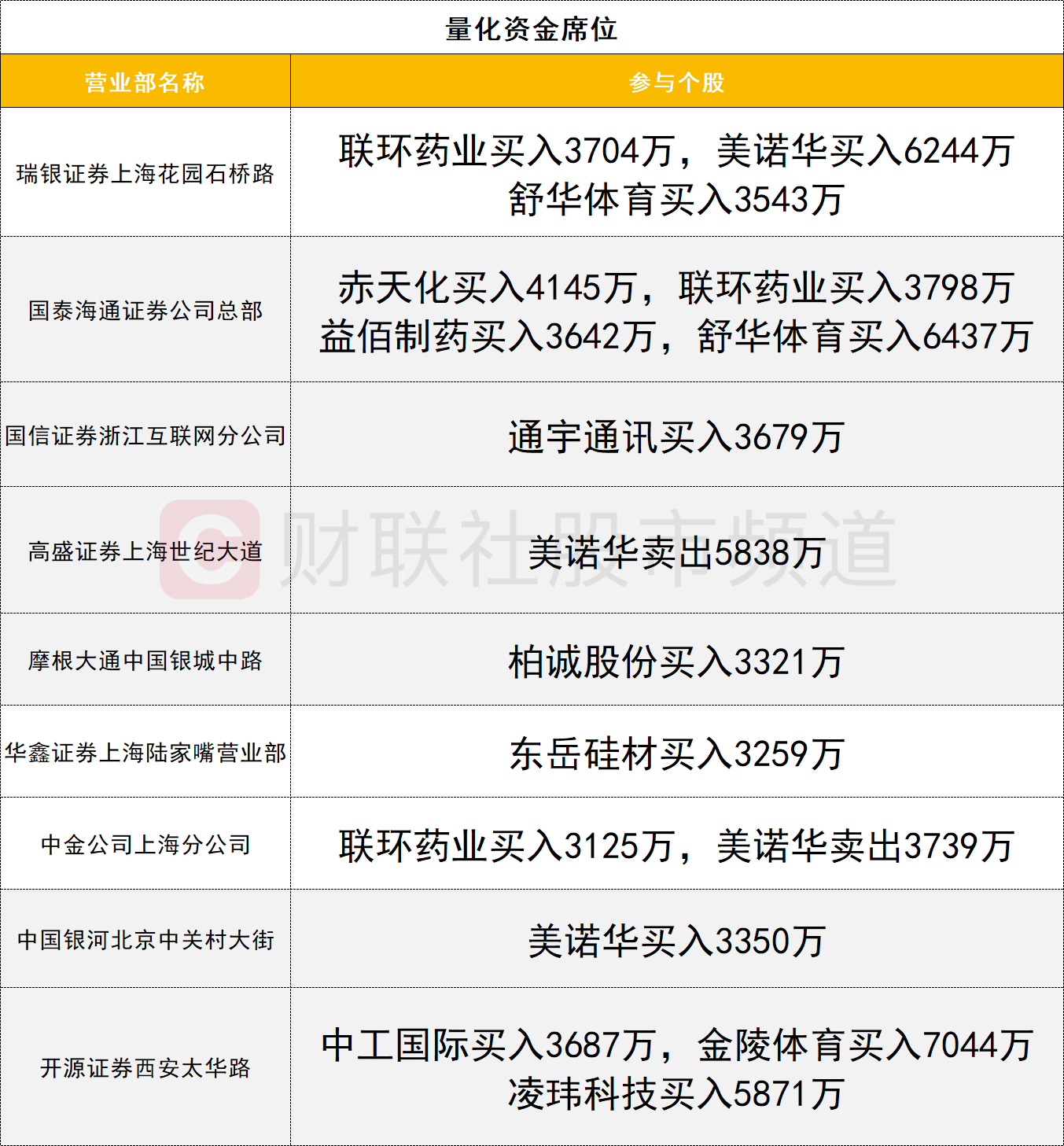 量化资金活跃度明显降低,体育人气股金陵体育获开源证券西安太华路营业部买入7044万。