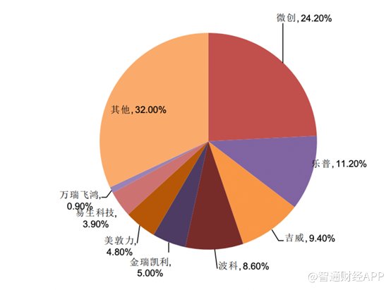 集采后,国产化率达到80%,已基本实现国产替代。其中微创、乐普、吉威(蓝帆)三家国产企业份额领先,合计为45%,外资中波科占据8.6%、美敦力第二占据4.8%。