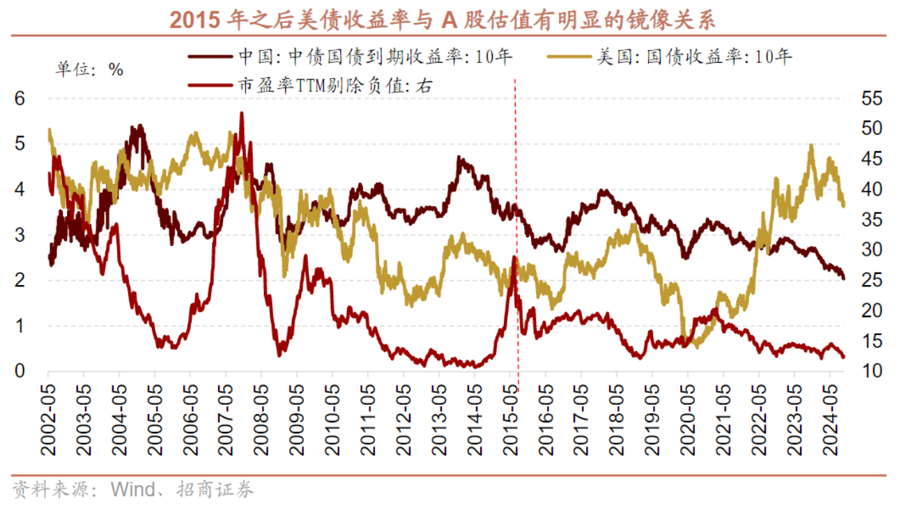 2015年以后,美国十年期国债收益率与中国资本市场呈现一定镜像关系。
