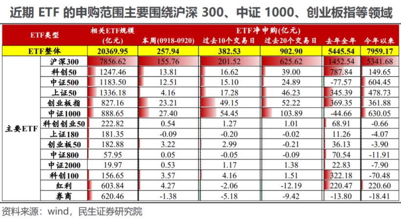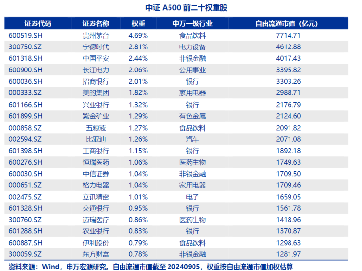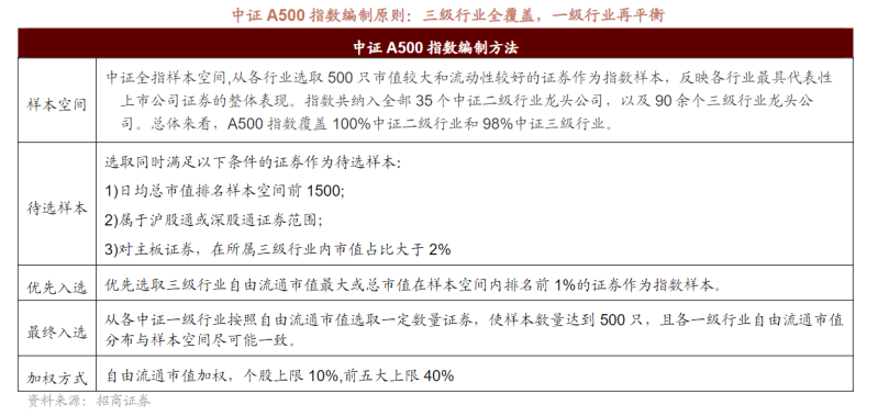 A500ETF的发行和建仓节奏。9月5日,数只中证A500指数品种申请材料获接收,银华、南方、国泰、摩根、泰康、富国、景顺长城、招商、嘉实、招商共计10家基金公司申报该产品。A500指数样本兼顾市值代表性与行业均衡性,纳入更多新兴领域龙头,工业、信息技术、通信服务、医药卫生行业合计权重约50%。