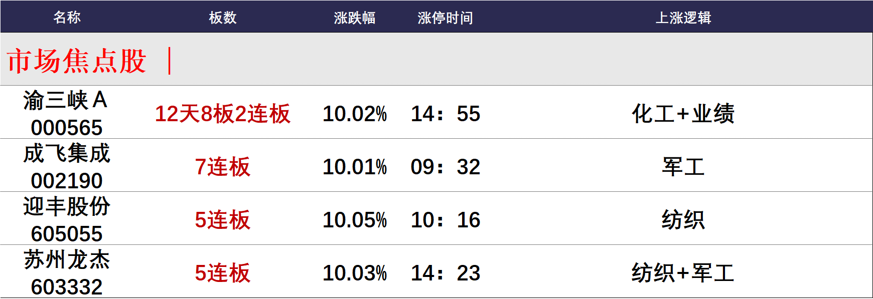 个股方面,全市场超3800只个股下跌,短线资金继续抱团高位股,渝三峡A走出12天8板,股价创近8年来新高,尤夫股份晋级3连板,近18个交易日录得9次涨停。不过值得注意的是,国芳集团、襄阳轴承、中毅达等部分高位股午后跳水,或表明资金对高位股分歧加大。