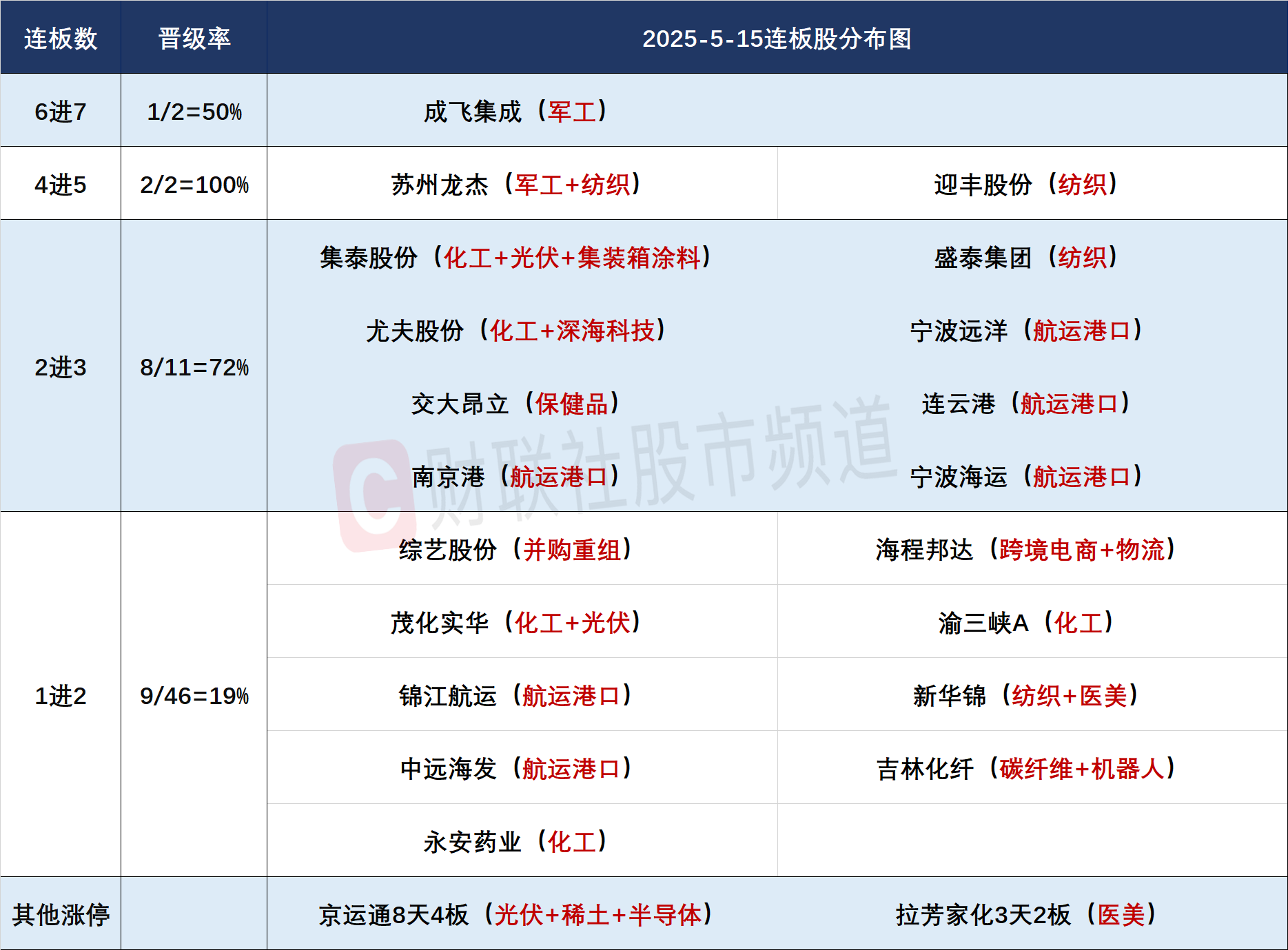 5月15日连板分析:高位分歧加大 麦角硫因概念异军突起