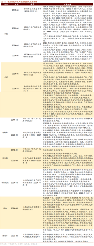 后续展望:从当前政策预期来看,分行业化解产业结构性矛盾的政策尚未出台,有望尽快落地。从发改委表态来看,不同行业的整治手段或不尽相同,炼油、钢铁等行业或主要通过化解存量过剩产能的手段进行优化;煤化工、氧化铝等行业或通过遏制产能盲目扩张的手段进行控制;新能源汽车、光伏等“新三样”行业或通过行业自律—即加强企业行为约束的方式来进行监督。