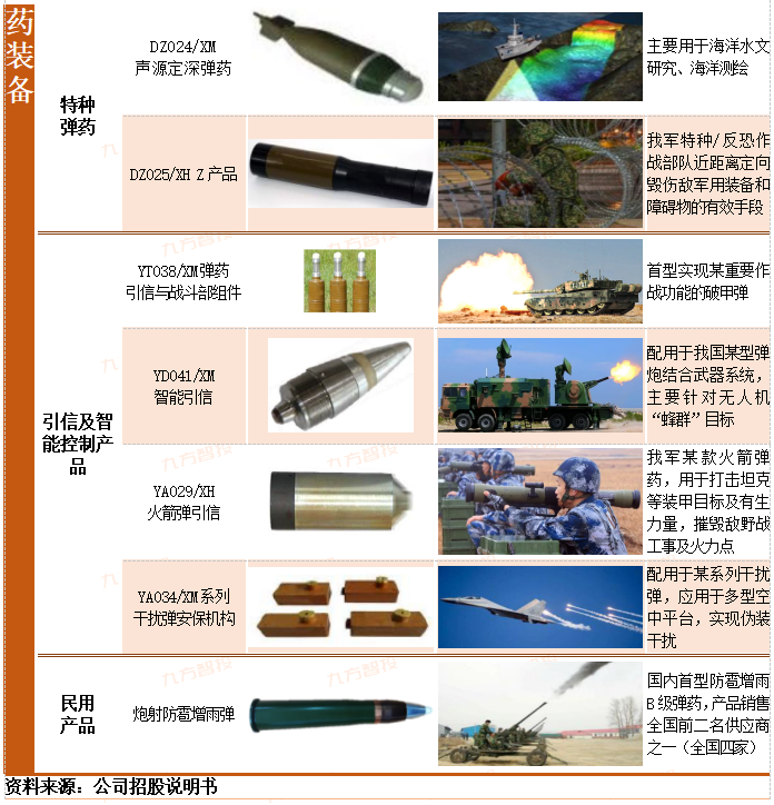 立足核心产品业务,国科军工主要聚焦常规主战型号配套弹药与制导/远火弹药重要部件配套两大主要方向。根据招股说明书,公司主要产品的下游应用场景覆盖防空反导、空战攻防、高价值目标空面打击(对地/反舰)、舰艇攻防等领域,配用型号包括Yx系列、Px系列等多项国家重要列装导弹和军贸C系列导弹、WS系列火箭弹等项目产品。可以说,国科军工作为横跨导弹与中小口径弹药两大领域的重要企业,是我军重要的军用弹药武器装备供应商之一、军用弹药领域的“小巨人”代表之一。