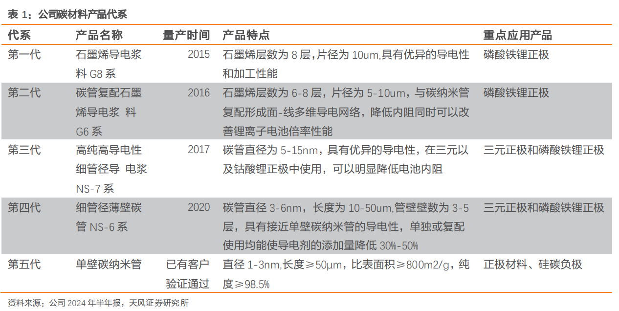 公司稳步推进产能建设,已形成“青岛+江门(古井和恩平)+龙南”三大导电剂生产基地,共6.5万吨浆料产能。其中,青岛基地年产2万吨导电浆料,江门基地扩产后年产4.5万吨导电浆料。2023产量4.2万吨,同增73.5%;24H1产量1.9万吨。