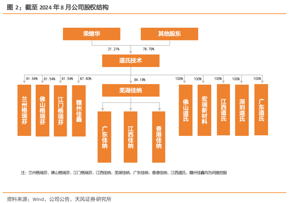 截至2024年8月,公司实控人为荣继华,持股21.21%,股权结构稳定。