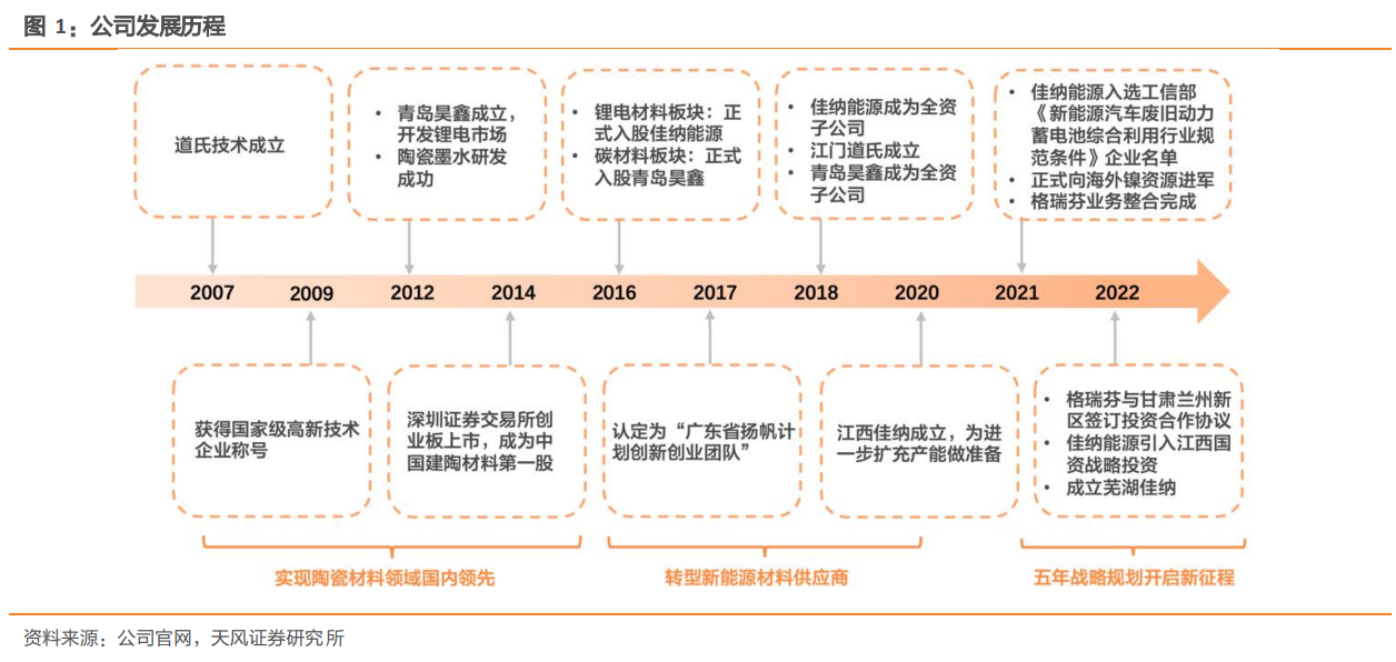 公司以陶瓷材料起家,逐步转型为锂电材料和碳材料产业链的新材料研发生产一体化平台。公司创立于2007年,于2014年在深交所上市。公司主要业务有陶瓷材料、锂电材料、碳材料和战略资源四个版块。