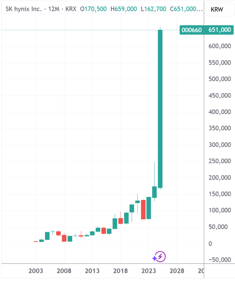 作为2025年的全球最牛市场,韩国基准KOSPI基准指数以惊人的75.63%年度涨幅收官。这个结果不难解释——占该指数权重近30%的存储双雄三星电子和SK海力士全年分别暴涨125%和274%。AI热潮的衍生交易也在韩国市场发酵,变压器制造商晓星重工业以及核能巨头斗山全年涨幅也超过300%。