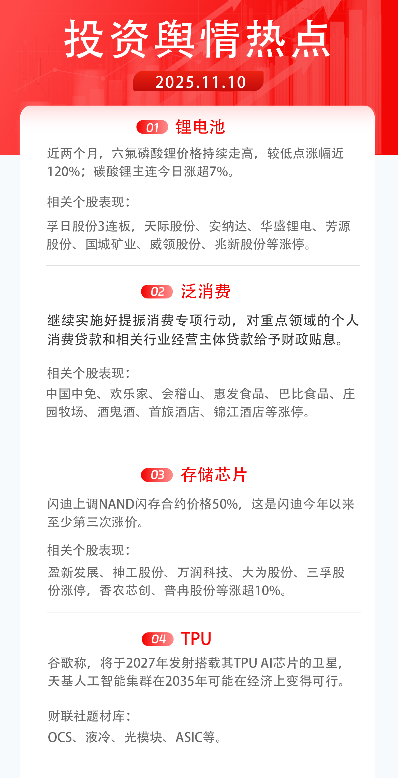 11月10日舆情热点:锂电池、泛消费、存储芯片
