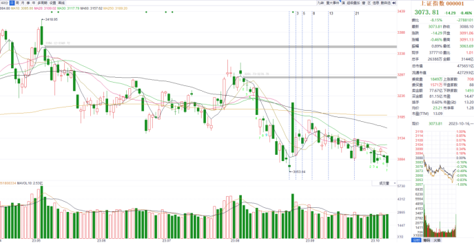 同时,周末大家讨论比较多的是巴以的冲突,带动了黄金和原油价格的大涨,今天A股也有情绪的映射。不过从图上看,无论是原油还是黄金,日K线都还处于震荡的状态,趋势不算明显。