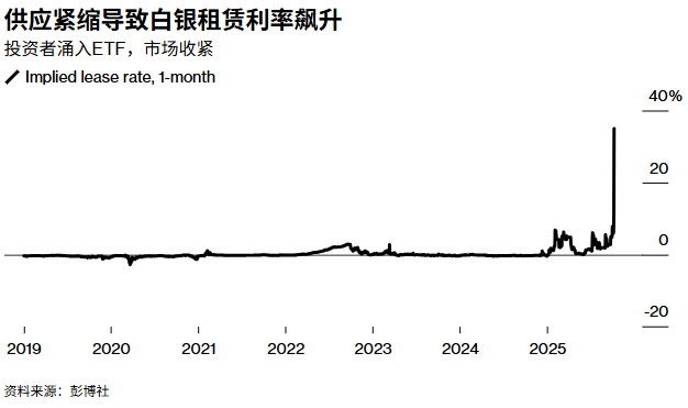 伦敦白银市场当前已现前所未有的紧缩态势,借贷成本飙升。市场担忧美国今年可能对白银加征关税,交易商抢先抢运白银赴美,伦敦库存被快速消耗,可借贷白银数量随之减少。