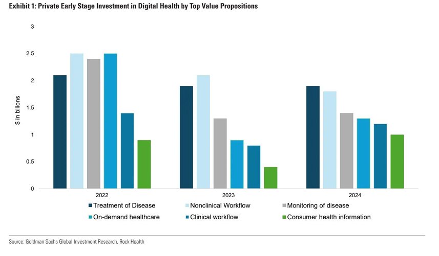 高盛分析团队认为,对于数字健康平台的积极投资以及该行业积极创新步伐仍然意义重大。国际消费电子展(CES)展示了数百家处于远程患者监测、远程医疗以及行为矫正领域早期发展阶段的公司。