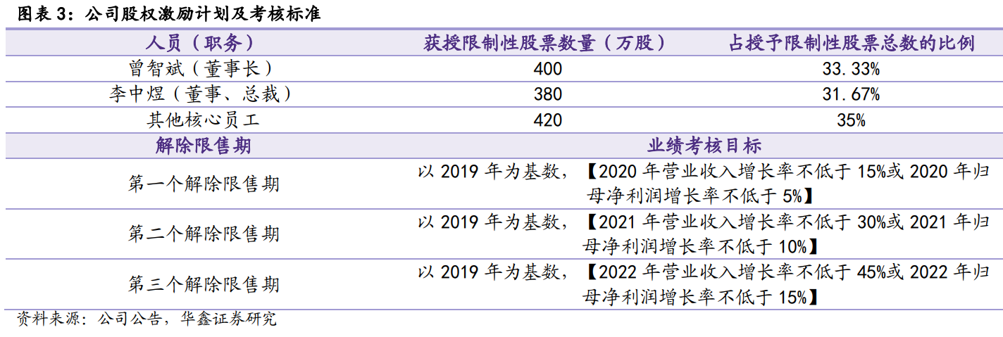 股权激励核心人员,彰显公司经营信心,2020年11月2日通过股权激励计划,授予董事长、董事、总裁以及核心团队员工共计18人授予1200万股限制性股票,授予价格为11.26元/股,并以较高的业绩考核作为标准,有利于公司稳定核心团队,并彰显了公司对长期业绩发展的信心。