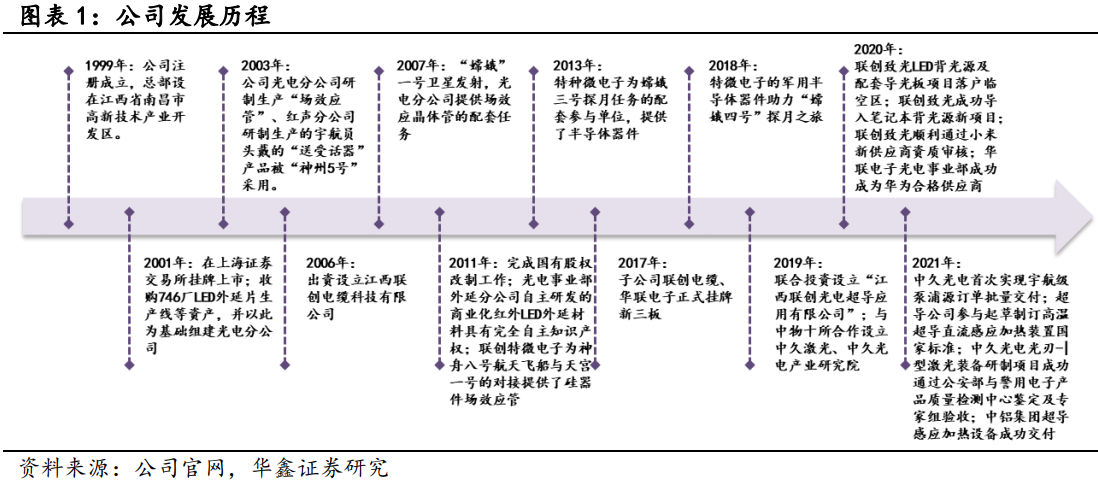 联创光电:公司致力于半导体产业的研究与制造,积淀形成了良好的光电子产业基础和产业转化能力,拥有电子元器件研发生产技术。产品布局包括智能控制部件、大功率半导体激光器件及装备、背光源及应用、电线电缆等产业板块,不断加速智能控制器件、激光器件装备、特种电缆等高新技术产业的融合化、规模化发展,使公司成为科技领先型军民融合企业。