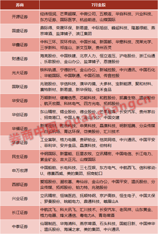 截至目前,已有30余家券商披露7月金股报告,卖方机构本月整体青睐的标的与行业也浮出水面。