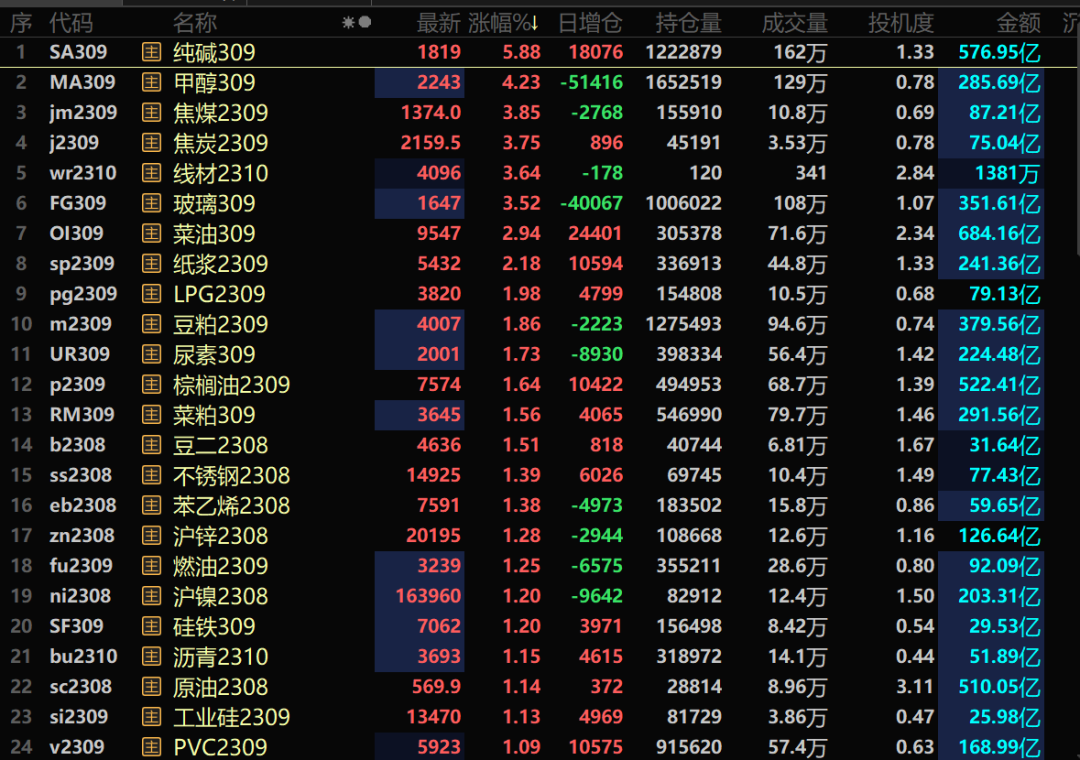 美元的杀跌往往首先对应着商品价格的回升。今天早盘,期货市场亦是一片火红。这其中,纯碱和玻璃的大涨又与中国的房地产政策有关。