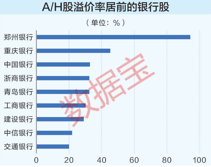 除招商银行外,其他14只A/H银行股均存在较高的溢价率,其中郑州银行A股相对于H股溢价率达到94.21%,H股被严重低估,重庆银行、中国银行、浙商银行A股相对H股溢价率也在30%以上。