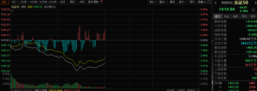 今天(5月22日)早盘,A股各主要指数小幅低开,截至上午收盘,上证指数基本收平,近期频创历史新高的北证50指数大幅调整,上午收盘下跌4.38%。