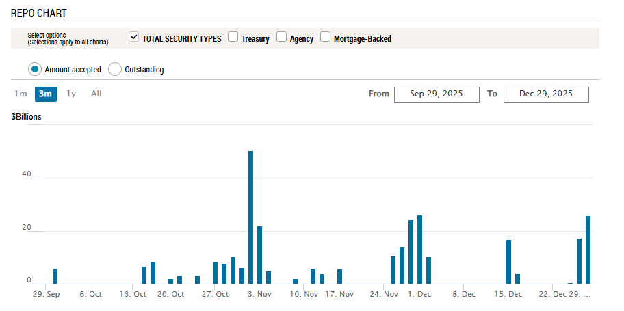 然而,传闻中所说的美联储被迫通过紧急隔夜回购机制向银行系统注入340亿美元,却“无迹可查”——截至本周一,纽约联储依然未对此发表过任何声明。从官网中能查询到的信息看,周一的隔夜回购机制动用规模为259亿美元。而上周五的172.5亿美元操作都是发生在当天上午,下午的操作需求为零(几乎可以认为与白银市场关联度不大)。