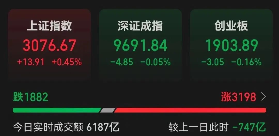 上午收盘,上证指数上涨0.45%,深证成指下跌0.05%,创业板指下跌0.16%。