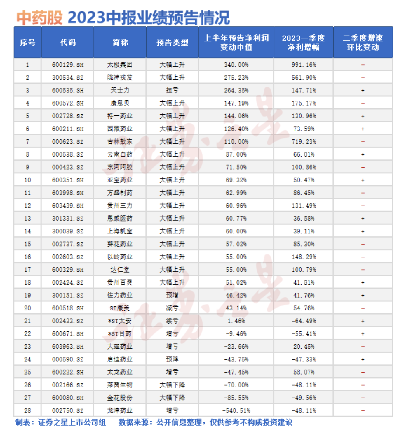 从A股上市中药企业上半年业绩来看,虽然整体表现“亮眼”,但相比一季度,多家上市公司在二季度的业绩增速已有所放缓。比如,太极集团一季度净利润同比大增991.16%,环比翻倍,但根据中报预告中的净利增速回落至340%,二季度单季环比增速显著降至40%;康恩贝一季度净利环比增长121%,二季度净利环比下降18.40%。此外,陇神戎发、方盛制药、吉林敖东等A股上市公司二季度净利增速环比也有回落。据媒体相关报道统计,中药企业二季度净利增速环比回落的有16家,占比近六成。