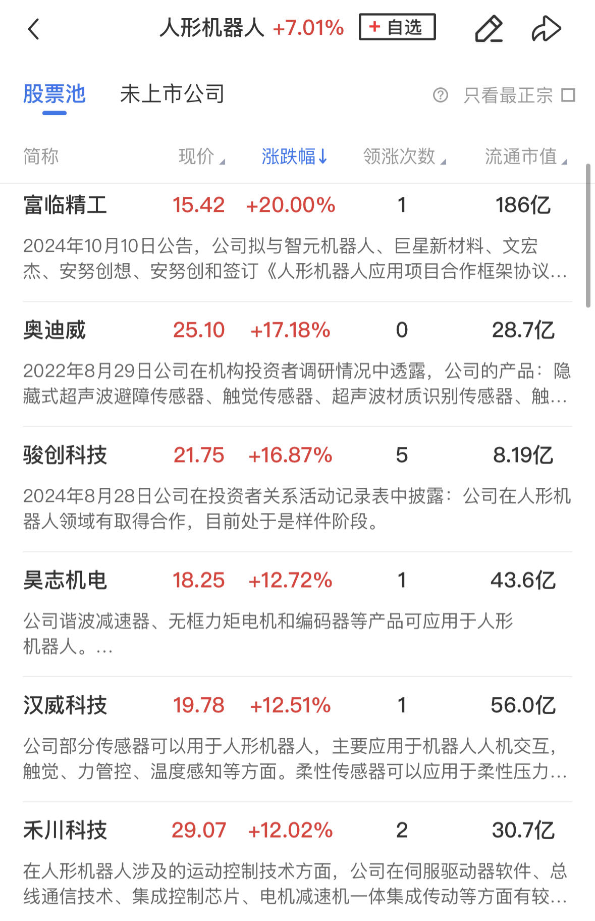 板块上,人形机器人概念股全线爆发,北交所鼎智科技30CM涨停,瑞迪智驱、埃斯顿、柯力传感、鸣志电器、雷赛智能、新兴装备、夏厦精密等10余股涨停。