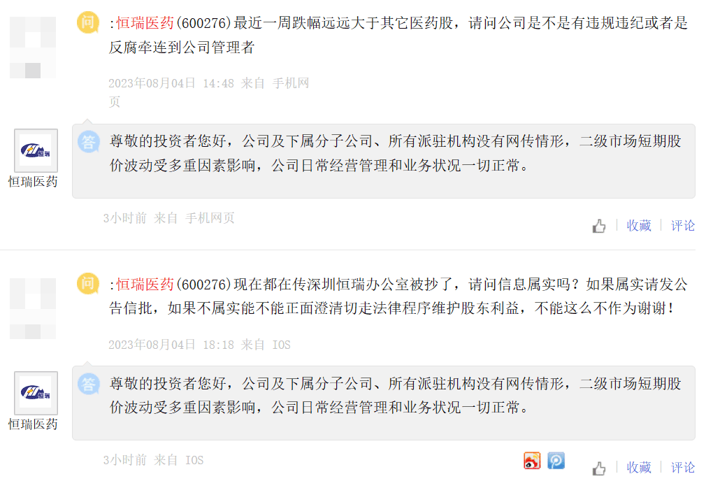 目前,除了恒瑞医药外,也有多家医药上市公司在互动平台上回应了投资者的问题。