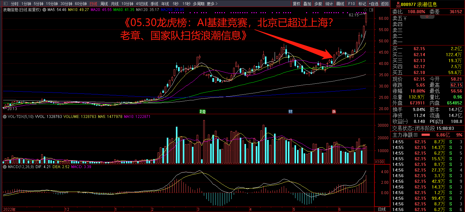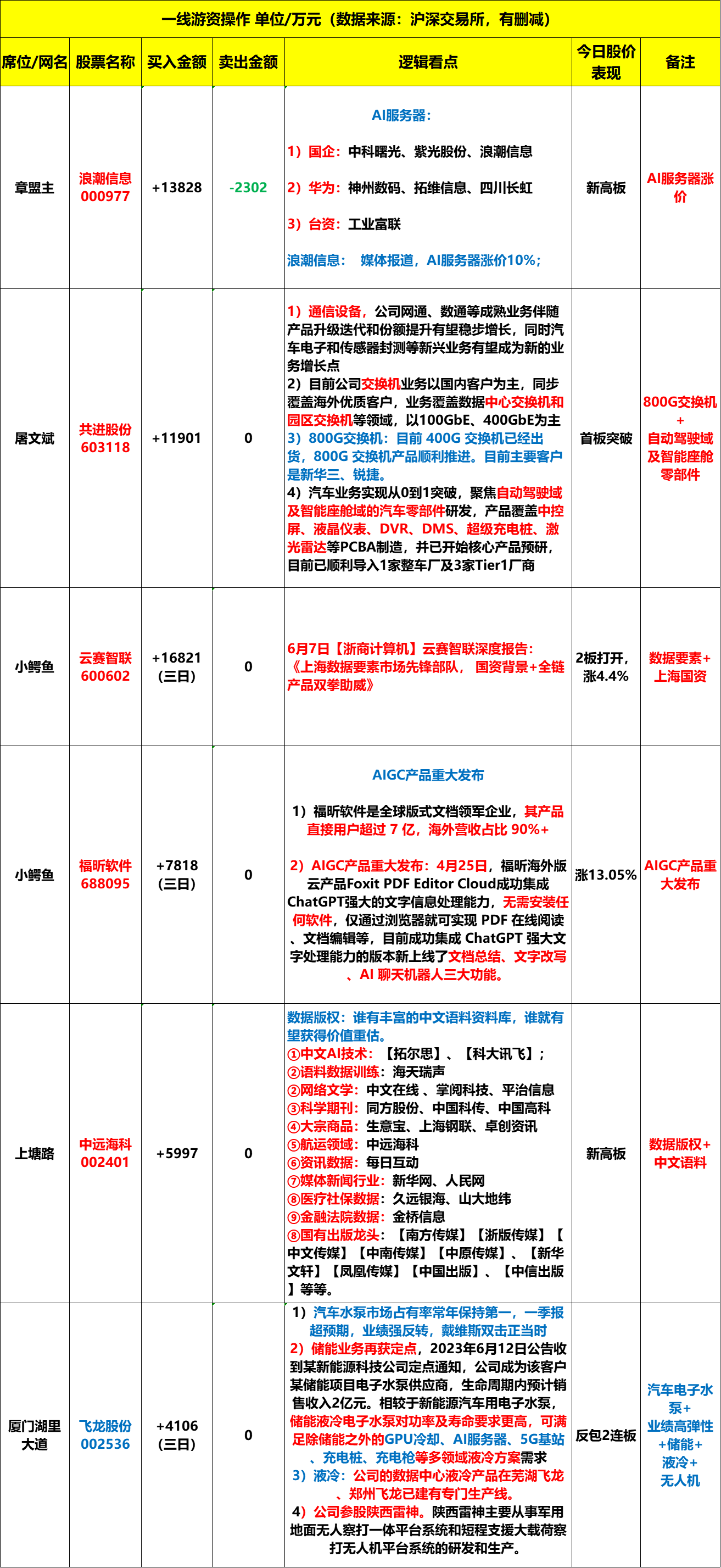 1)浪潮信息又涨停,续创历史新高,该股的逻辑我们在5月30日文章《05.30龙虎榜:AI基建竞赛,北京已超过上海?老章、国家队扫货浪潮信息》重点解析过。