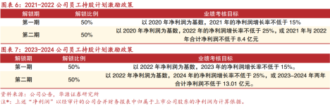 2023年7月,公司发布《2023年限制性股票激励计划实施考核管理办法》,解锁期分为两期,设定了以2022年净利润为基数,2023年的净利润增长率不低于15%及以2022年净利润为基数,2024年的净利润增长率不低于25%,或2023-2024年两年合计净利润不低于13.01亿元的业绩考核,为公司长期发展定下目标。
