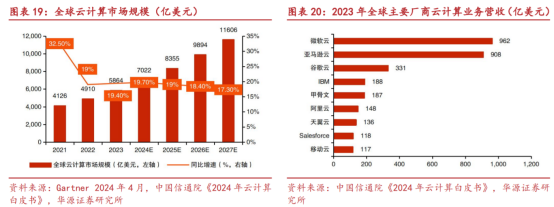高举云业务旗帜,携手亚马逊云共谱出海服务新篇。亚马逊云(AWS)是世界云服务商龙头,具有业界领先的技术、服务能力,云市场份额占比较高,并在2013年进军中国市场。从服务商层面来看,云计算巨头持续领跑全球,第二梯队深耕细分技术领域保持追赶。据中国信通院《2024年云计算白皮书》,2023年,微软云和亚马逊云的营收分别为962.13亿美元、907.57亿美元,稳居全球市场头部。