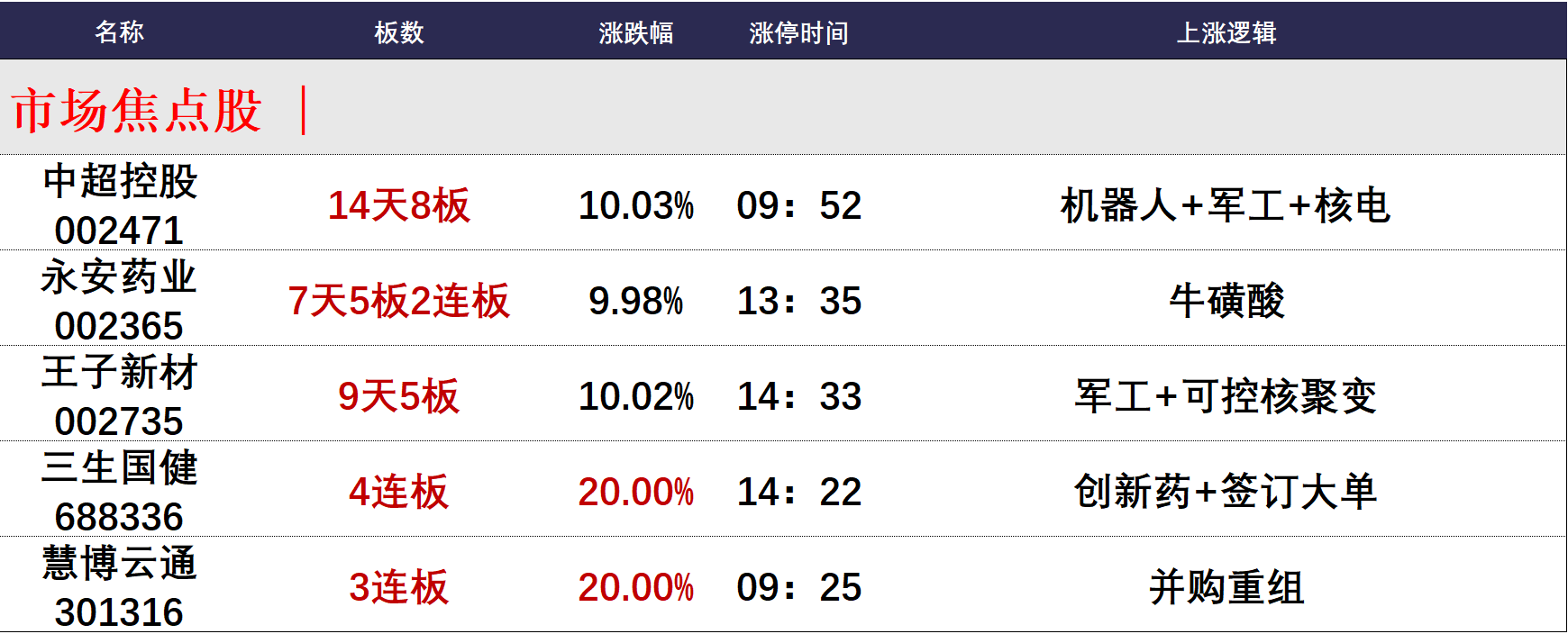 今日共40股涨停,连板股总数13只,其中三连板及以上个股7只,上一交易日共18只连板股,连板股晋级率38.89%(不含ST股、退市股)。