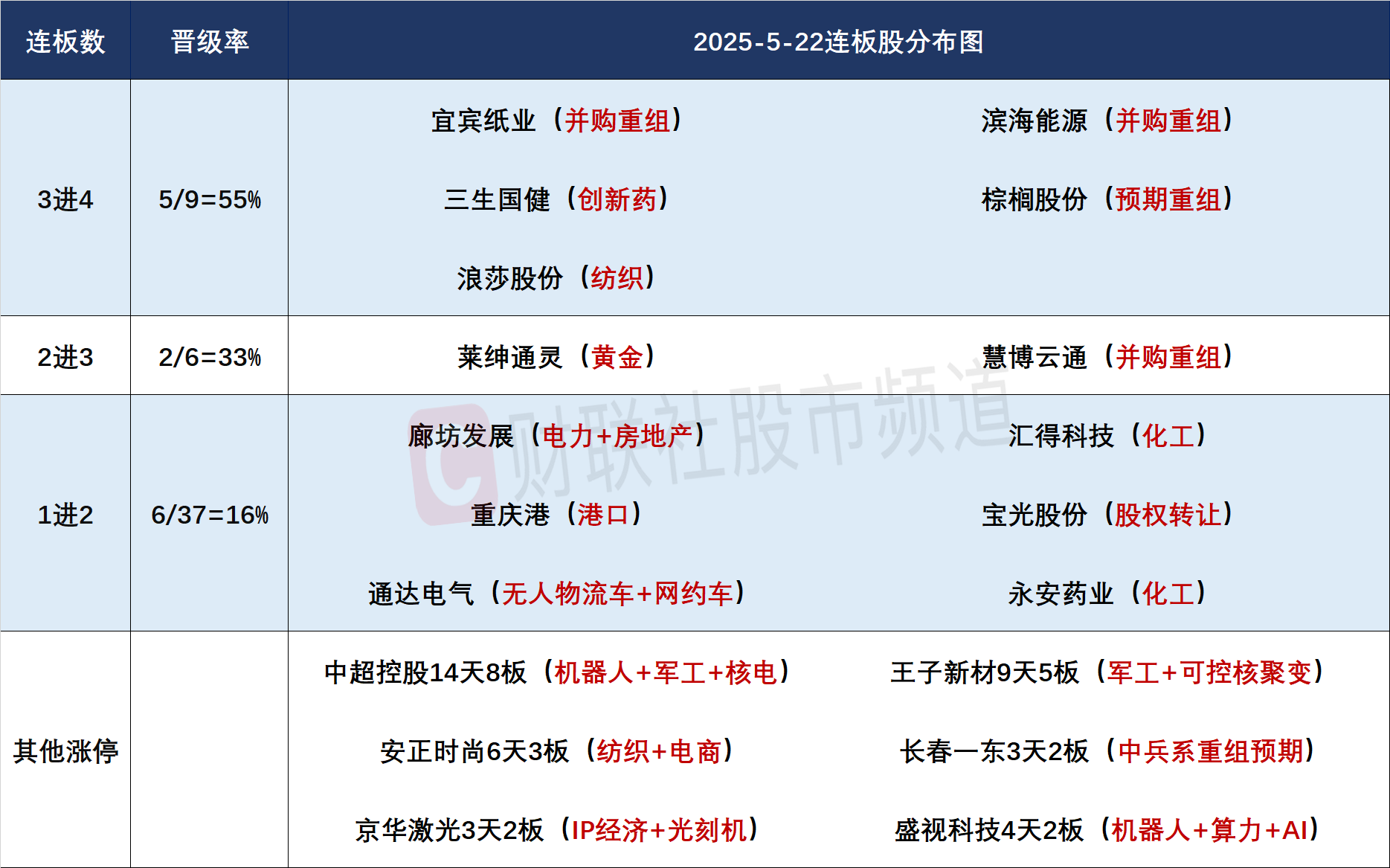 5月22日连板分析:高位股遭重挫 三生国健20CM四连板